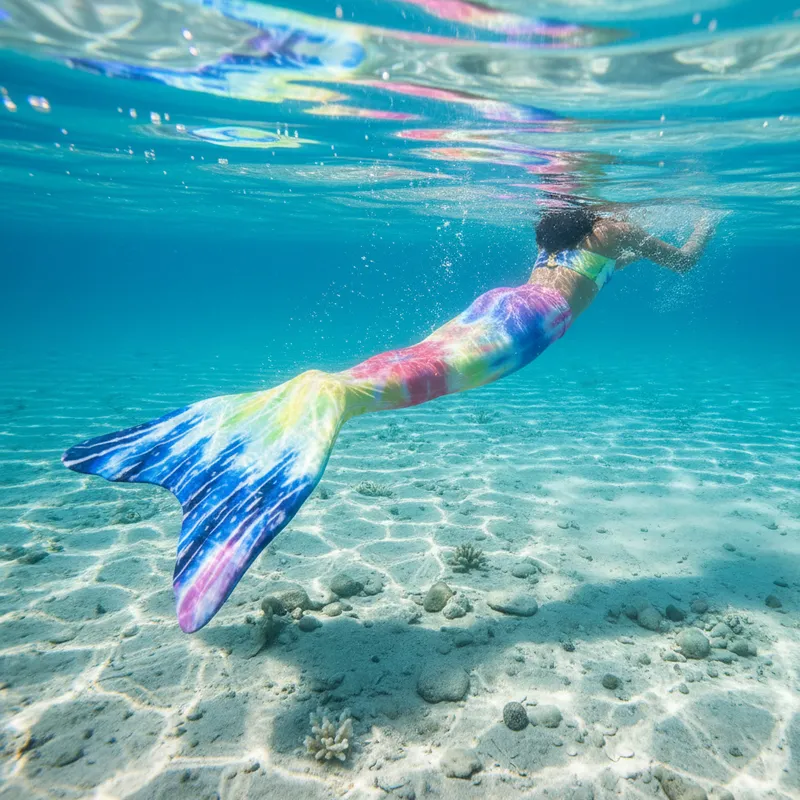 • As caudas são indicadas para crianças acima de 7 anos que já nadam muito bem, acompanhadas de um adulto.