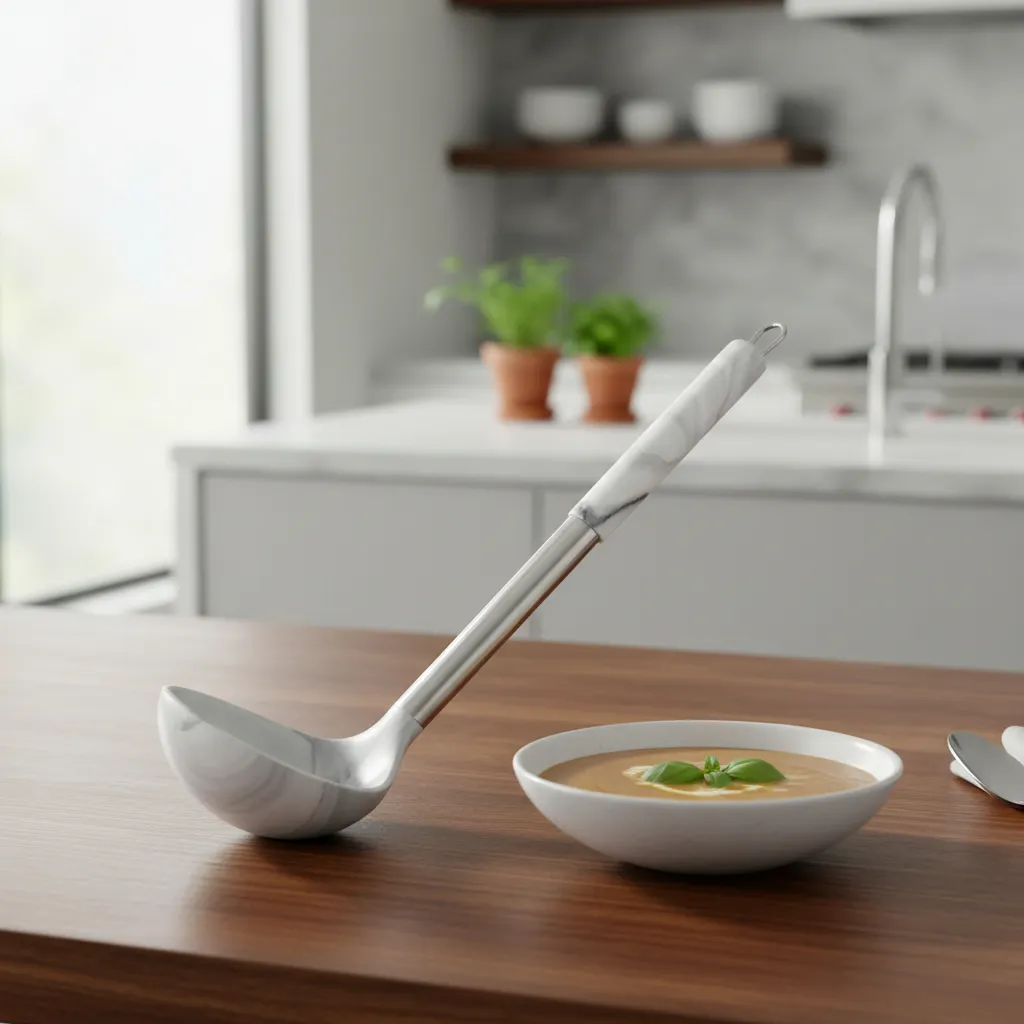 Concha De Silicone e Cabo de Nylon c/ Inox e Estampa Marmorizada