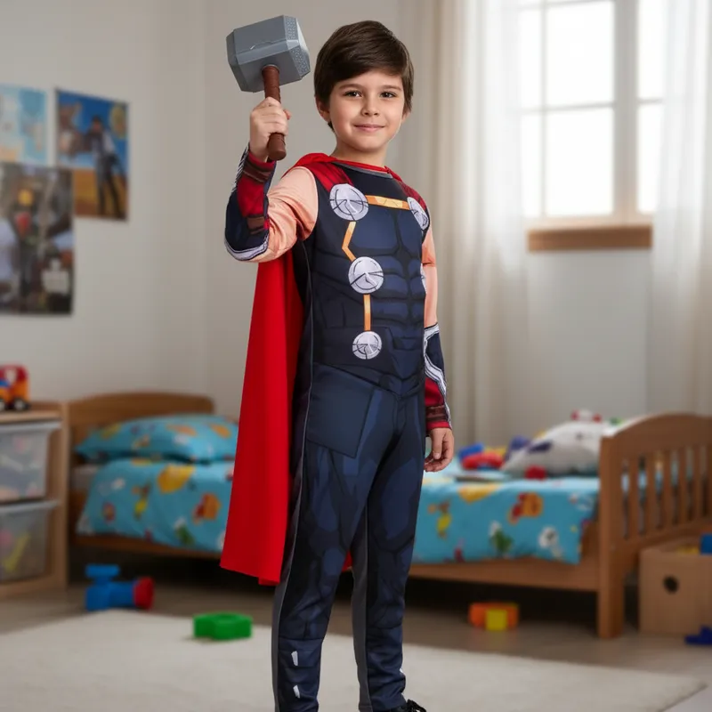 Fantasia Thor Infantil com Capa Acoplada e Martelo - Original