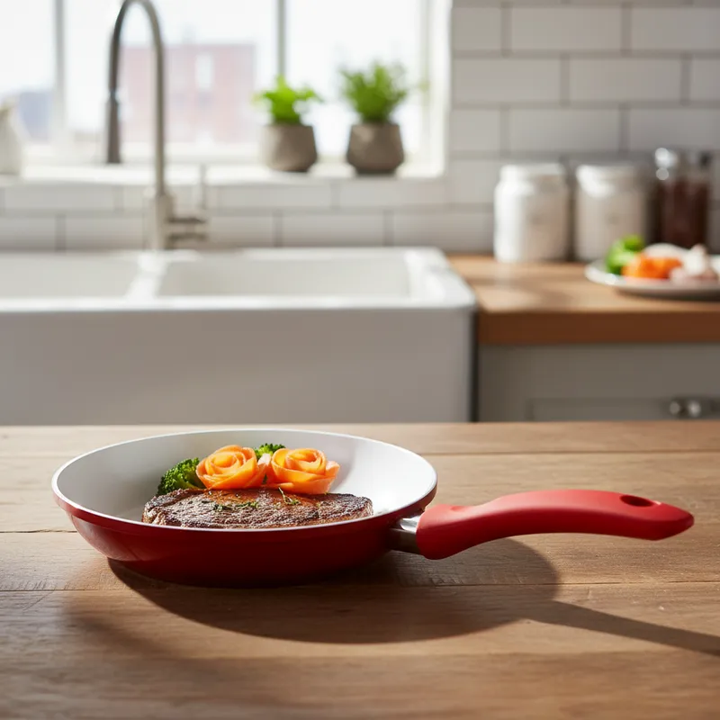 Frigideira Revestimento Cerâmico Vermelha com Cabo de Silicone 24cm