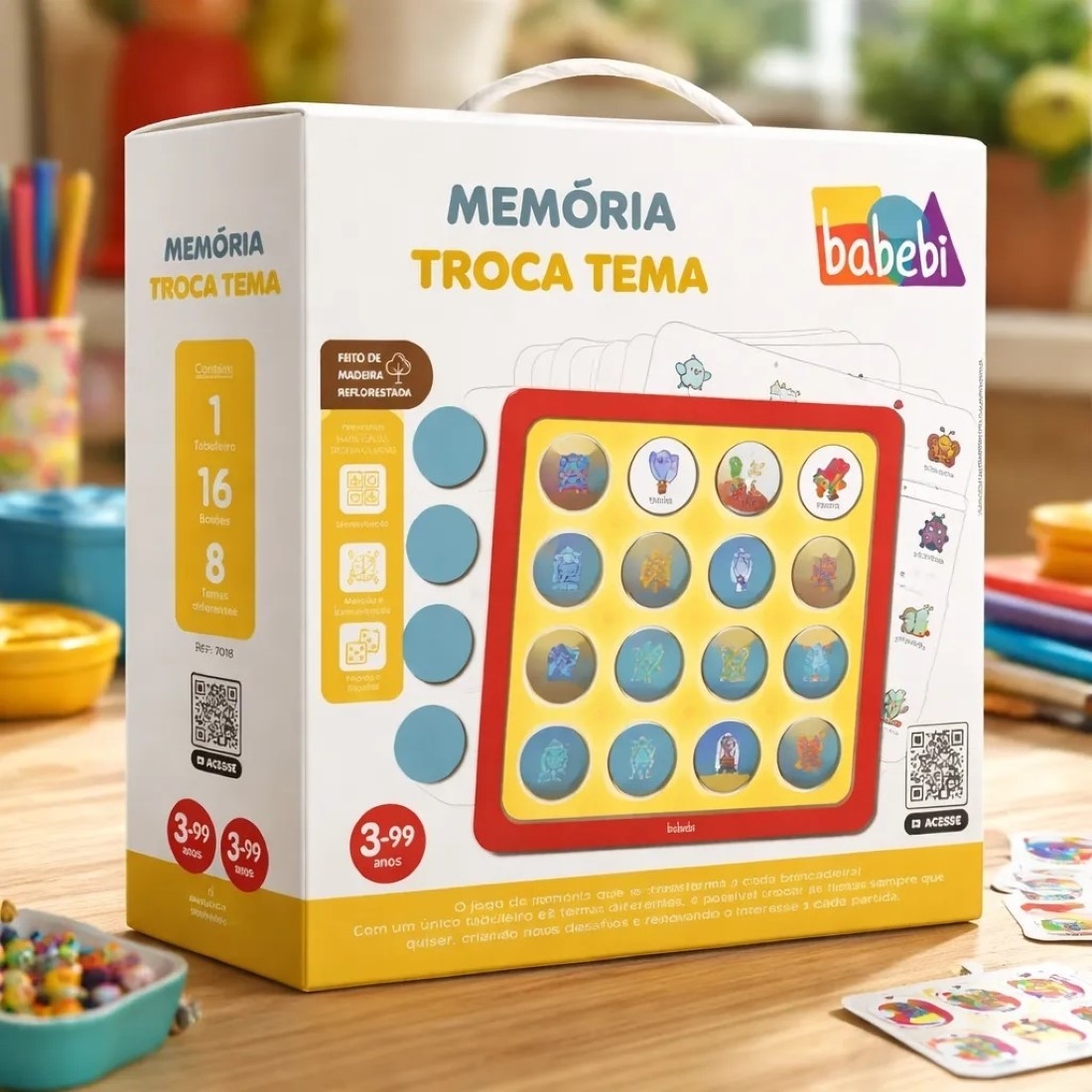 As crianças amam jogo da memória. Agora imagine este tabuleiro com 8 temas diferentes que podem ser trocados a qualquer momento. É muita diversão!
