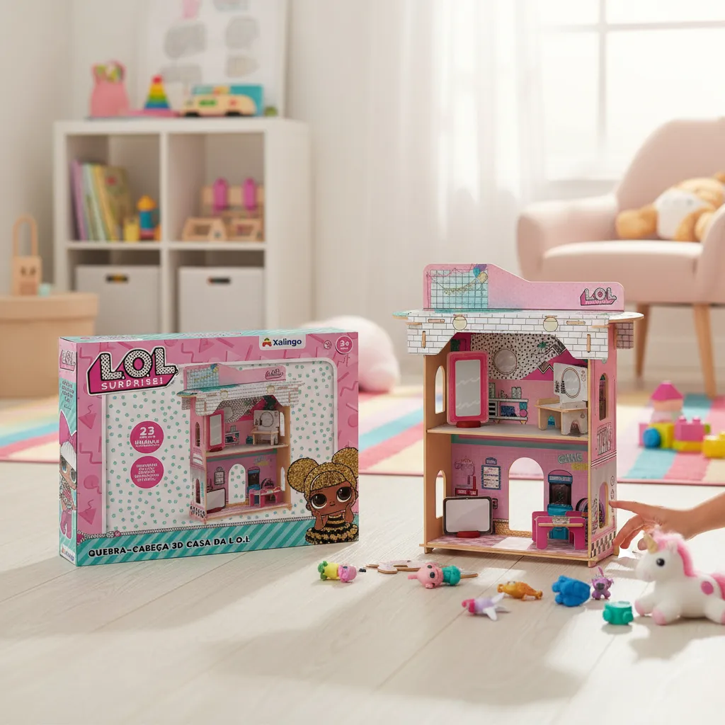 Com o Playset Quebra-Cabeça 3D Casa da LOL, a criançada vai poder se divertir muito com a temática de suas personagens favoritas! Composto por 23 peças em madeira reflorestada, o jogo tem um ótimo acabamento e encaixe simples. A montagem de suas peças auxilia no desenvolvimento da imaginação, da criatividade, do pensamento lógico e da coordenação motora, além das habilidades de identificar, comparar e associar.