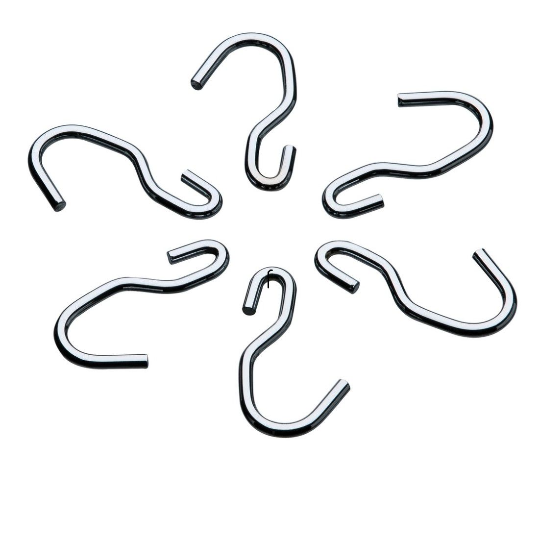 O conjunto é composto por 6 ganchos que encaixam em barras de formato chato (Piatina) e são fabricados em aço carbono.