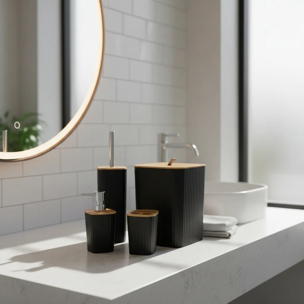 KIT BANHEIRO 4 PEÇAS QUADRADO EM BAMBU