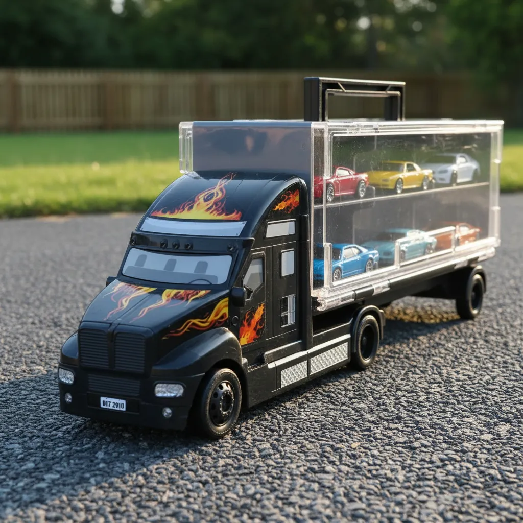 - Conteúdo da embalagem: 1 carreta e 6 miniaturas de carrinhos
