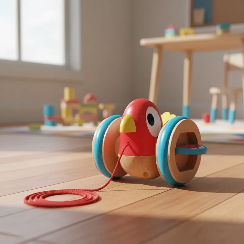 Este brinquedo de puxar com tema de pássaros é o amigo ideal para levar para qualquer lugar. As rodas deste brinquedo de madeira permitem que os pequenos levem um amigo para onde quer que explorem. Os aros das rodas têm uma superfície antiderrapante que mantém o brinquedo instável estável em pisos polidos.