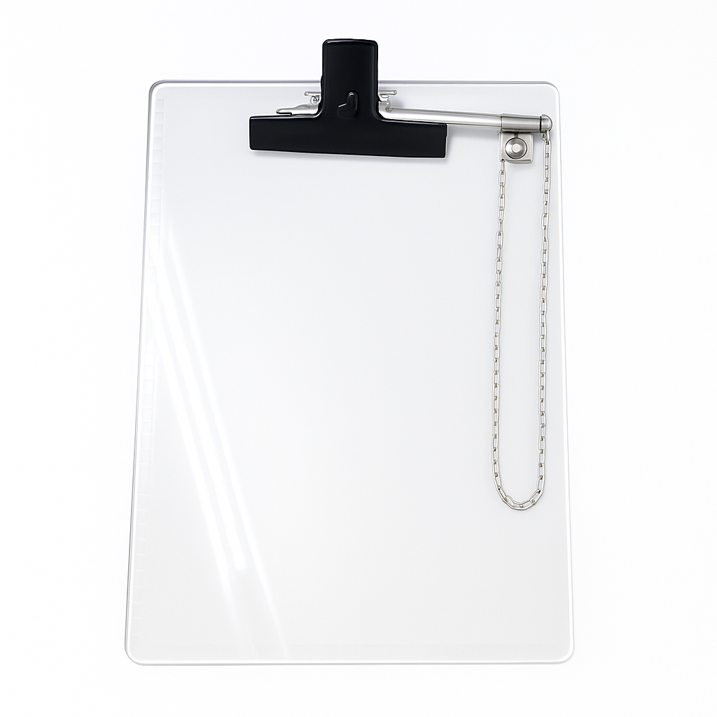 Prancheta tamanho ofício com prendedor metálico para facilitar na escrita e dar melhor acabamento ao seu trabalho.