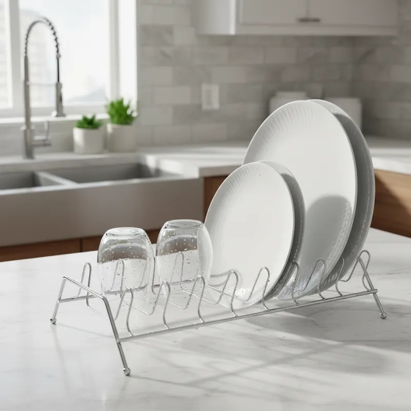 O escorredor-organizador de pratos com 8 posições é o acessório ideal para manter sempre em ordem os pratos e tampas de diversos tamanhos. Sua utilização organiza e otimiza o espaço em armários, ampliando a capacidade de armazenamento. Pode também ser utilizado sobre bancadas de pias para secar pratos e outras louças!