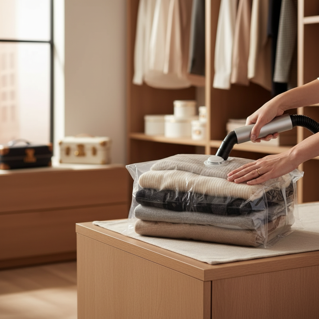 Com o SACO ORGANIZADOR À VÁCUO você deixa suas roupas e seu quarto muito mais SEGURO, COMPACTO E ORGANIZADO